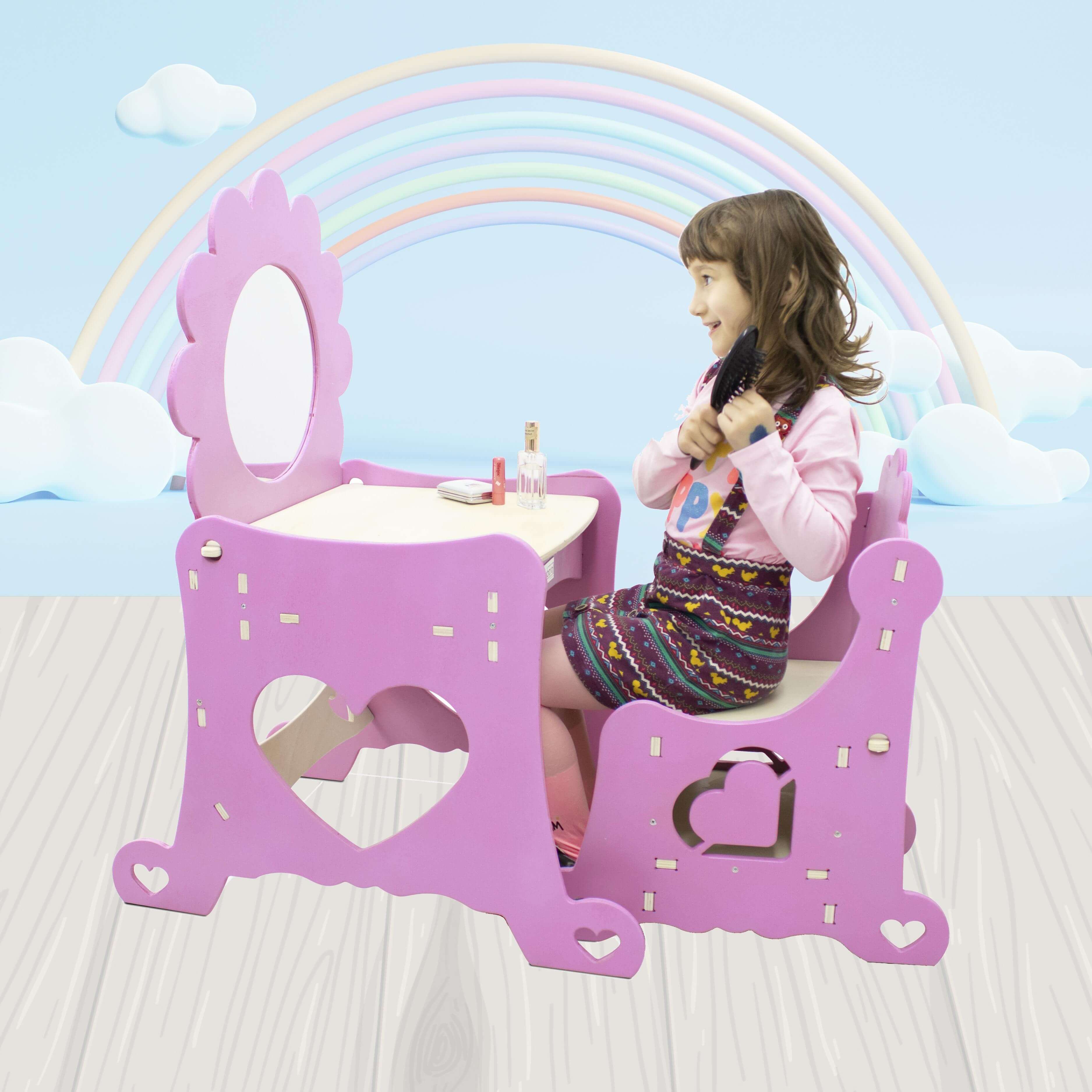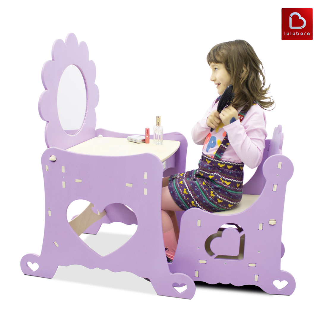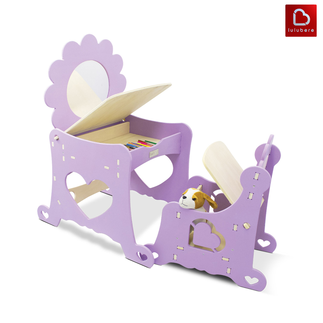◘ RECOVERER; Desk upper cover can be opened and kids can easily keep and store their make-up materials as well as other accessories such as pens, notebooks, magazines in the compartment inside.