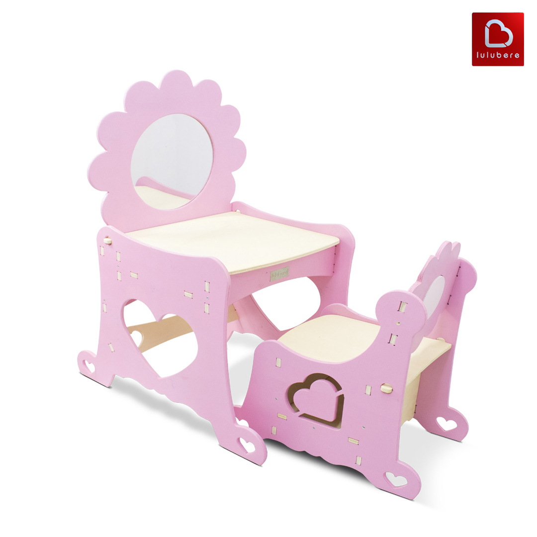 ◘ LOVELY; Kids love this wooden made Activity, Study and Make up Chair-Desk set for pre-school nursery and kindergarten students as well as primary school kids